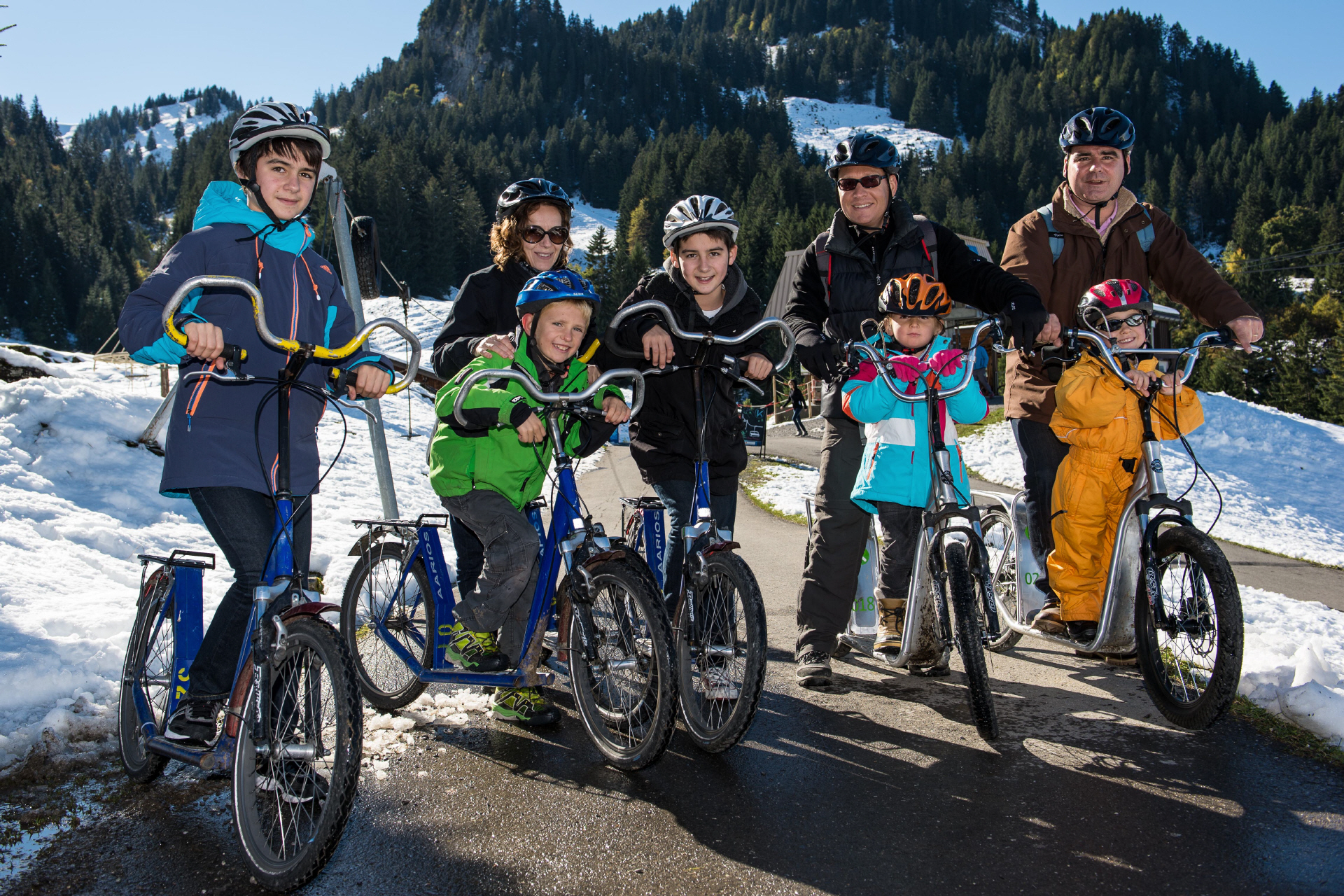 Dann wird's rasant: Mit unseren Trottis (ja, Tretroller mit Stil!) saust Ihr die Strecke hinab zur Talstation. Keine Sorge, auch ohne Helmfrisur ist der Spaß garantiert! Unten angekommen, könnt Ihr die Trottis einfach in unserem Container abstellen.